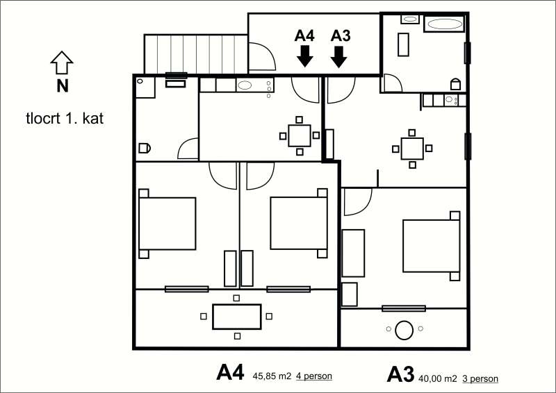 Each apartment in apartments “Marina” has a bedroom, a kitchen, a bathroom, a sea view balcony and it is fully equipped with TV and air-conditioning. There is also a possibility of using the parking and the barbecue grill.